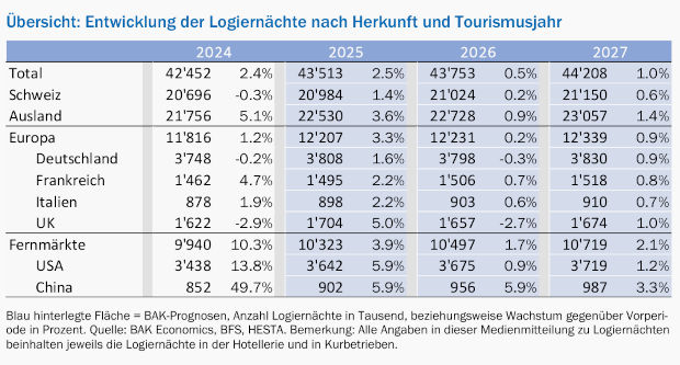 Tourismusprognosen von BAK Economics