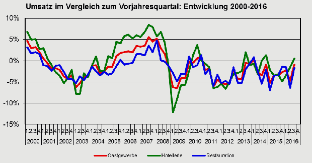 Gastgewerbliche Konjunktur von April bis Juni 2016